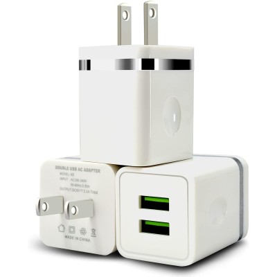 JIVIKI 3-Pack 2.1A/5V Dual Port USB Wall Charger Compatible with iPhone, Samsung, Moto, Kindle, Android Phone