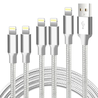 JIVIKI 5 Pack 3/3/6/6/10FT MFi Certified USB Lightning Cable Nylon Braided Fast Charging Cord Compatible for iPhone/iPad/iPod