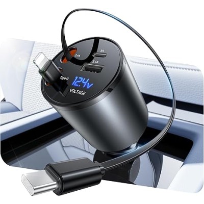 JIVIKI Retractable Car Charger 84W, 4-in-1 Fast Car Charger with Retractables 2.6ft