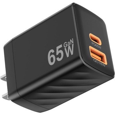 JIVIKI 65w USB C Charger Block, GaN Nano Super Fast Charging Wall Plug Port Pd Dual A & Type C Power Adapter for MacBook Pro/Air