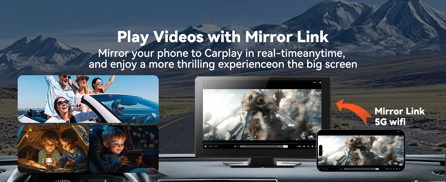 【Multi Audio Output&Wireless Mirror Link】With four audio output options—including Bluetooth 5.3, FM transmission, AUX output, and built-in speakers—you can customize your audio experience to your preference. The wireless CarPlay screen features the latest SUPERLINK screen mirroring technology, supporting wireless mirroring for both Android and iOS devices, enables seamless smartphone integration, projecting your phone's interface onto the display for an enjoyable and intuitive user experience.