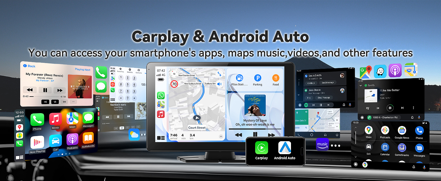 【Real-Time GPS and Online Maps】Step up your driving experience with the portable a-pple carplay screen. The android auto screen offers precise real-time location and GPS navigation when connected to your phone. Seamlessly integrate with popular map apps like Google Maps and Waze to receive live route suggestions that dynamically adapt to traffic conditions and lane modifications. By using the portable wireless car audio speaker, safe driving can be ensured.