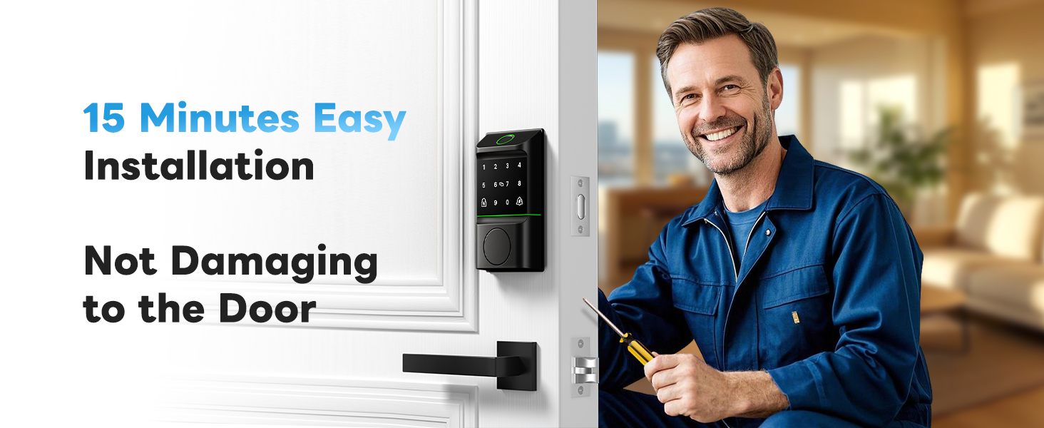 Quick and easy installation: only 15 minutes, just 5 simple steps to start and run! This smart door lock bolt includes a detailed manual and step-by-step video guide.