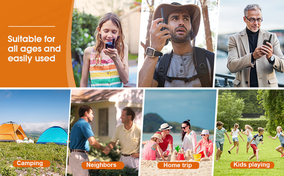 VOX hands-free function: Adult walkie talkies have simple voice and sound activation transmission (VOX), 3 sensitivity levels, and convenient hands-free operation. You can stay in touch with friends and family anytime during camping adventures or crowded supermarkets.