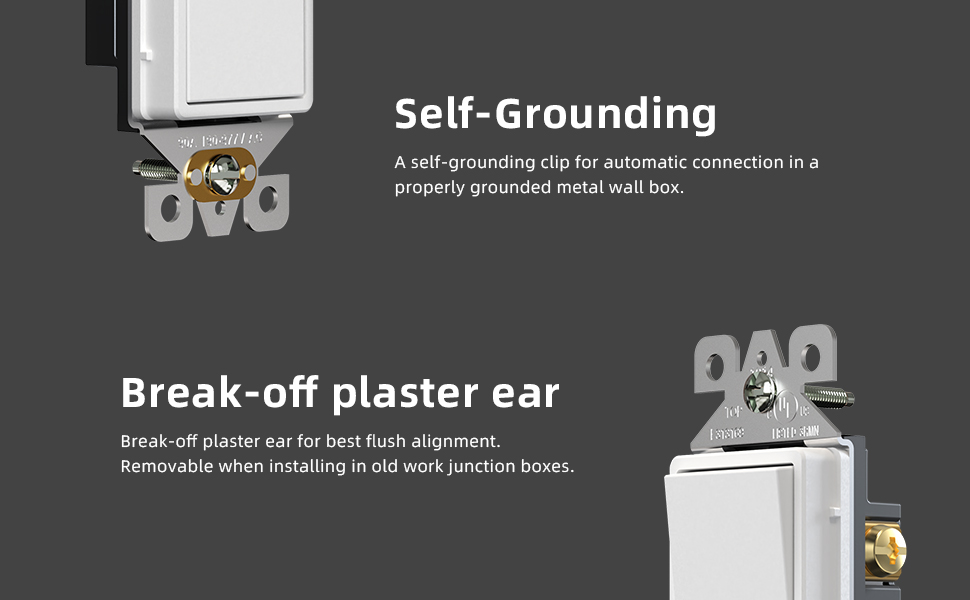 [Self grounding] Adopting a self grounding clip design, it automatically connects to the correctly grounded metal wall box.
